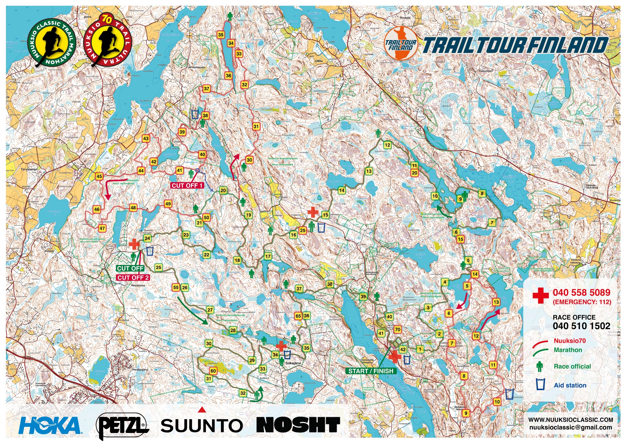 The event center is Solvalla Sports Insitute’s sports field, address Solvallanrinne 1, 02820 Espoo. The course connects the best trails and the most beautiful spots of Nuuksio National Park. Finishing the race gives two ITRA points.