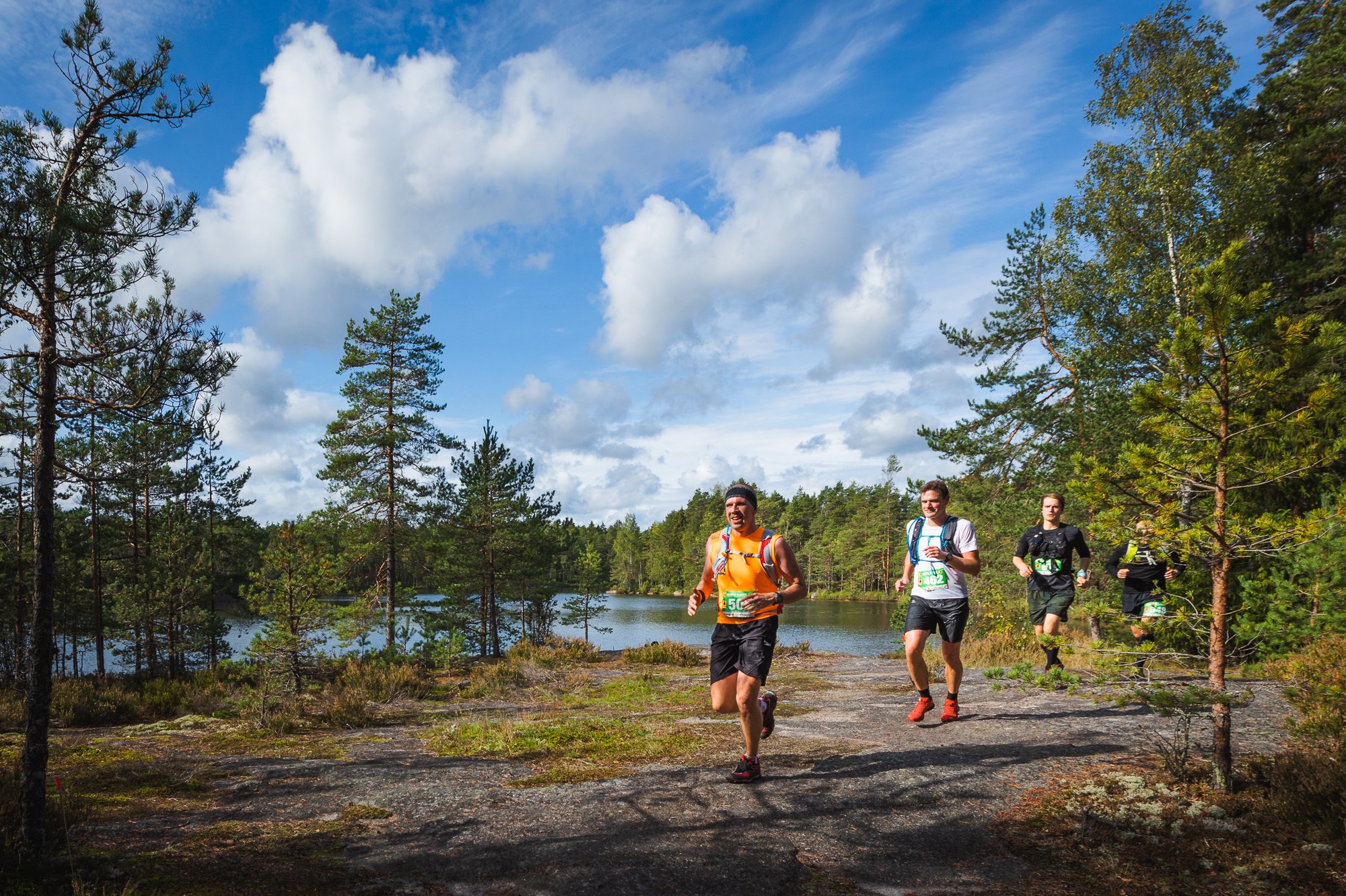 Reitti: Lenkillä juostaan maratonreitin pohjoisosa Orajärven, Pöksynhaaran ja Suolikkaan kautta. Pituus 22,6km. Lopussa mahdollisuus oikaista tietä pitkin, jolloin matkaa tulee noin 17,5km. Nuuksio70 -lisälenkin pituus on noin 9,5km, joten klo 9 lähdössä matkaa tulee noin 32km tai loppu tietä pitkin oikaisten 27km. Klo 10:n lähdössä kaksi vauhtiryhmää, ultran lenkillä kaikki samassa ryhmässä.