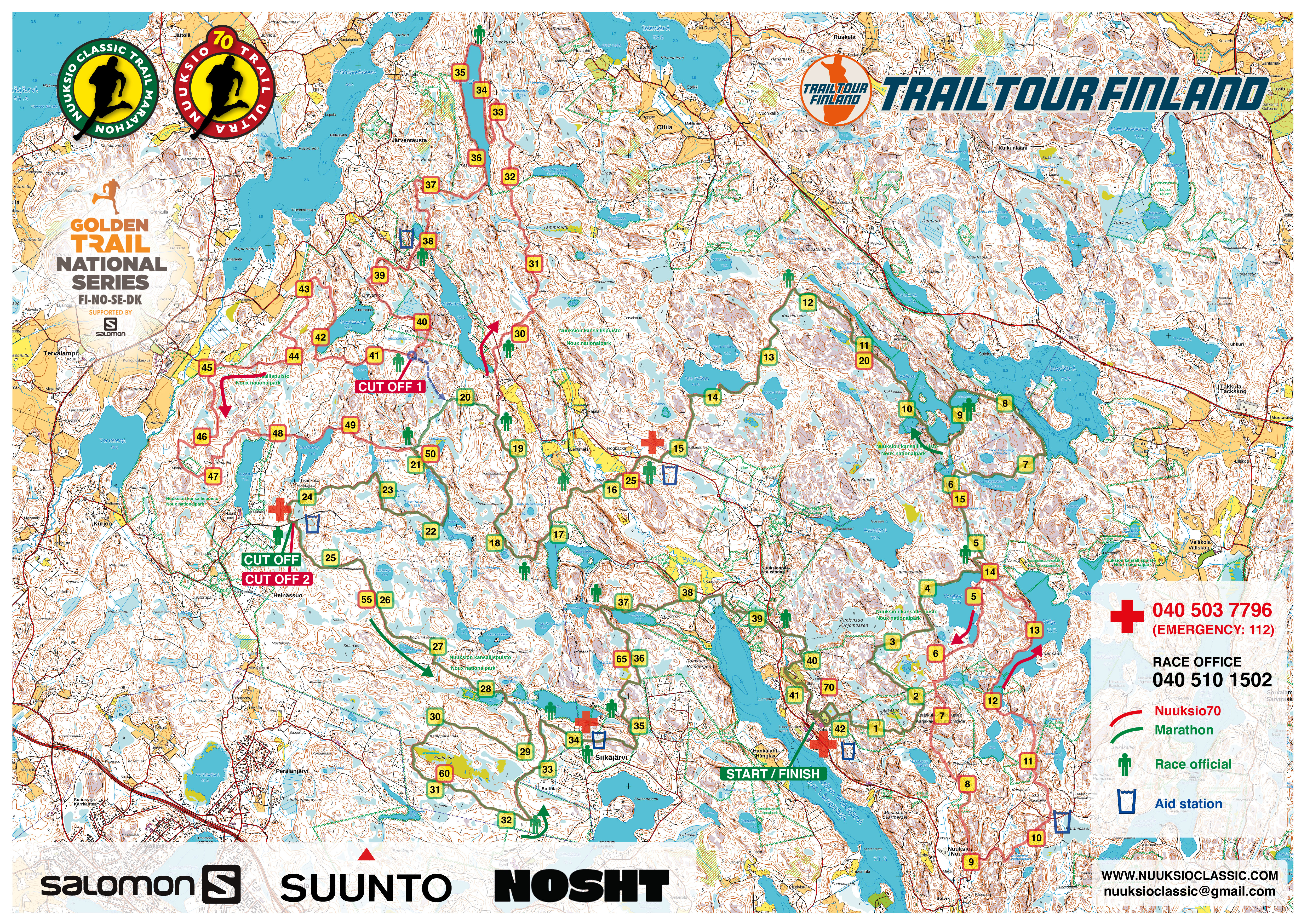 Nuuksio70 Trail Ultran reitti pohjautuu Nuuksio Classic Trail Marathonin 42km:n reittiin, joka on esitelty täällä. Lue myös Nuuksio70 esittely. Nuuksio70:n maaliinpääsy määräajassa tuottaa kaksi ITRA-pistettä.